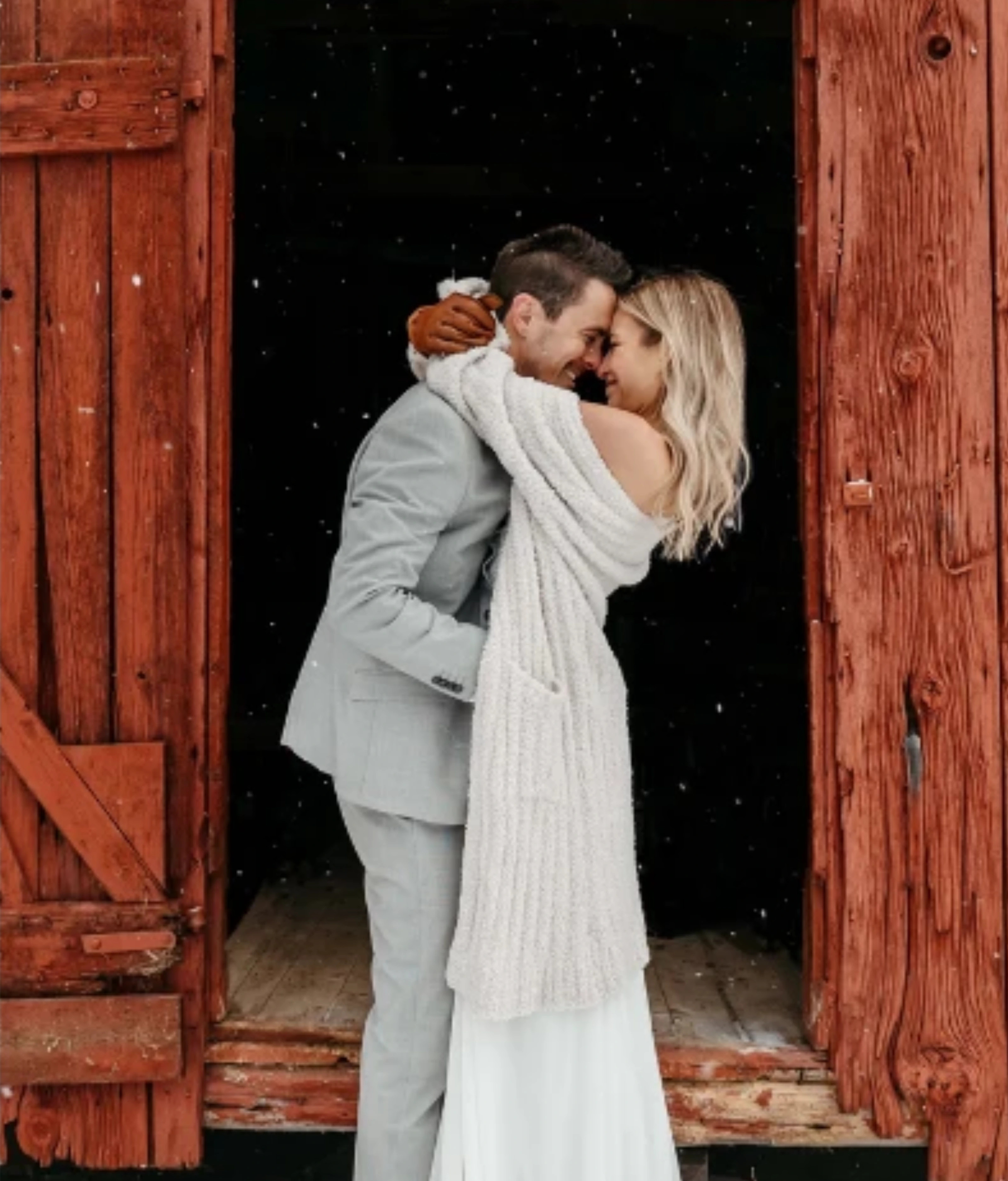 Winter barn nuptials evoke images of cozy settings, with warm lights contrasting the cool outdoors. Tweed, known for its durability and warmth, becomes the fabric of choice. Velvet accents, especially in deeper colors, can add a touch of luxury to the rustic ambiance. Given the chill, an overcoat is not just stylish but also practical. Patterns can lean towards the classic, perhaps herringbones or checks, adding texture and depth to your look.