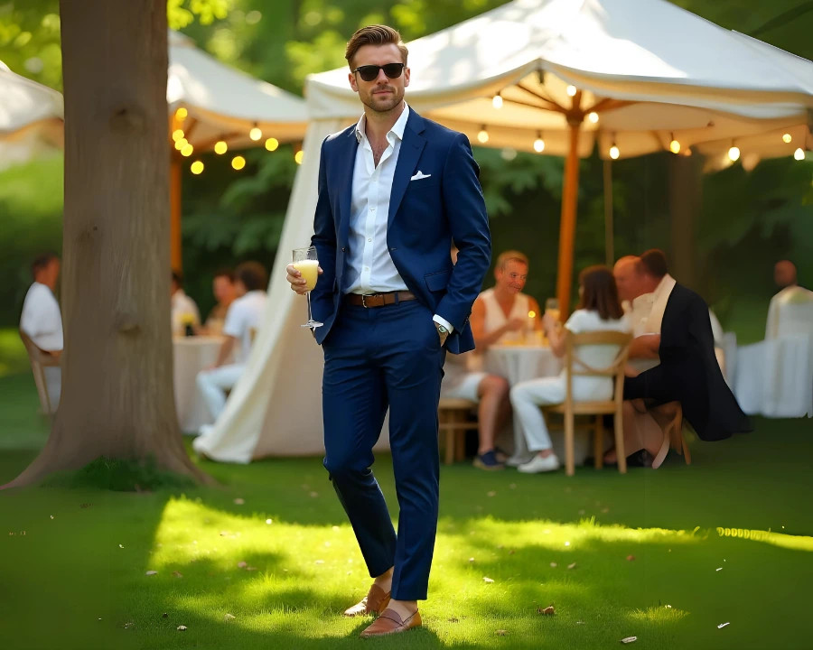 Go tonal with a matching linen shirt or blazer. Add a woven belt, and choose closed-toe leather shoes like monk straps or brogues. Stick to finer linen fabrics for these occasions, and make sure the pants are freshly pressed (but not over-ironed—creases are cool, remember?).