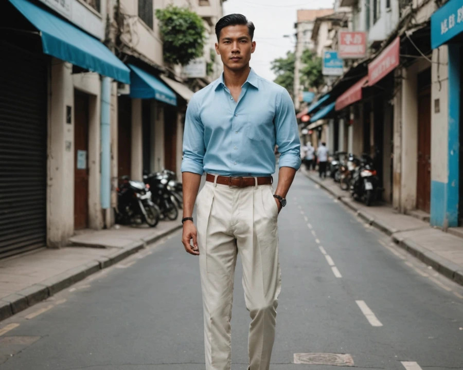 These colors reflect light beautifully and pair effortlessly with both whites and deeper tones. And most importantly, they don’t compete with the linen’s character—they enhance it. Avoid overly bold patterns or loud prints on your linen trousers—they rarely work well with the texture. Let the fabric and color do the talking.
