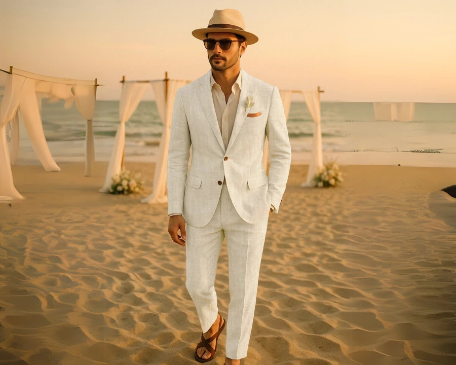 Whether you’re planning a tropical destination wedding or attending one as a sharply dressed guest, this guide will help you choose, style, and wear your linen suit like a seasoned beach wedding pro.