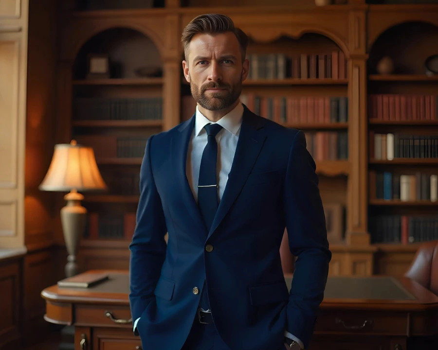 The velvet peak lapel tuxedo, crafted in rich tones like burgundy, emerald, or navy, is ideal for winter weddings, festive galas, and upscale cocktail events. Style it with black trousers, velvet loafers, and a silk bow tie for a touch of luxury.